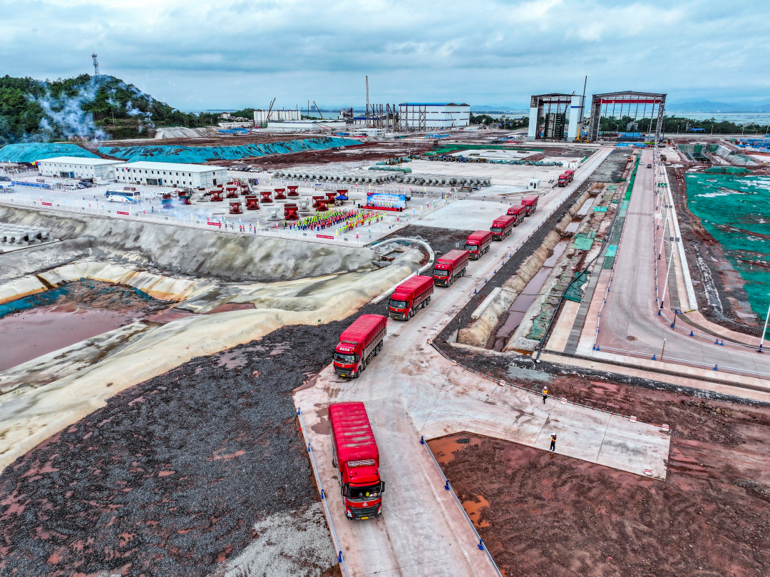 8月26日上午9时,随着第一车防波堤堤心石入海,标志着白龙核电项目一期工程海工工程建设正式启动。