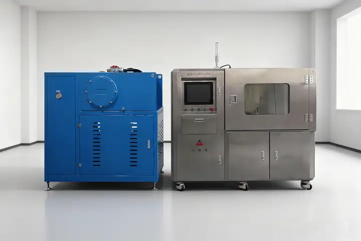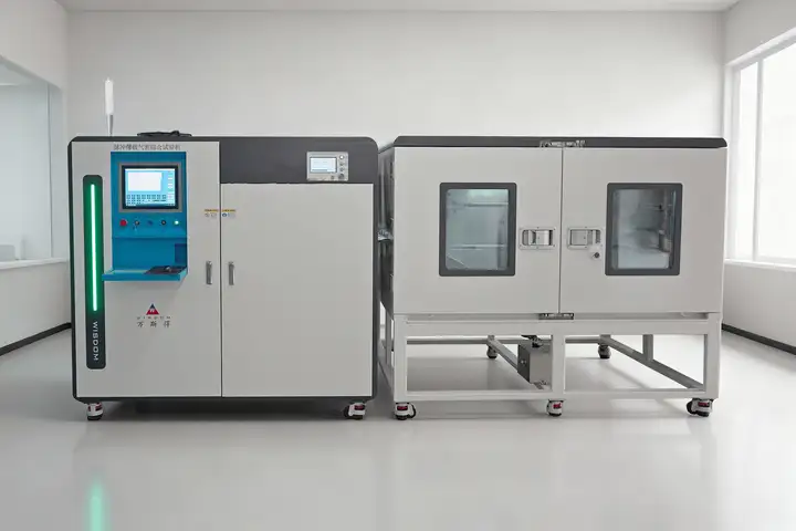 6.双高压脉冲试验机,是为国内知名汽车零部件企业量身定制研发的非标检测设备,集成介质温度与压力交变双重测试功能,可对液冷板、散热器等关键部件进行复合工况下的动态性能验证,支持独立压力交变试验或温度-压力耦合循环测试,满足新能源汽车热管理系统在极端环境下的可靠性评估需求。
