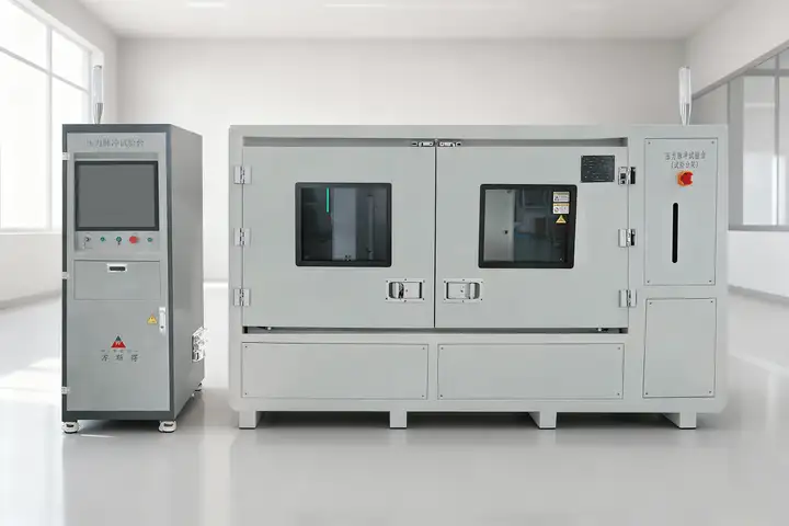 4.高低温脉冲试验机,是为国内领先新能源汽车制造商量身定制研发的非标测试设备,专用于在宽温域环境下对刚性试样进行高精度脉冲压力循环及静压强度测试,以满足汽车零部件在极端工况下的耐久性验证需求。