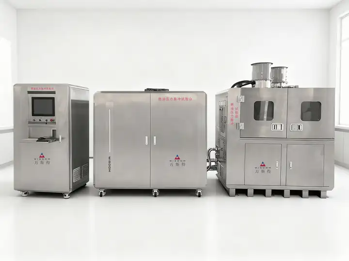 1.水脉冲试验机,该设备是为特斯拉核心供应商量身定制研发的非标测试设备,专用于满足其严苛的流体系统耐久性验证需求,目前已成功出口至南美市场。