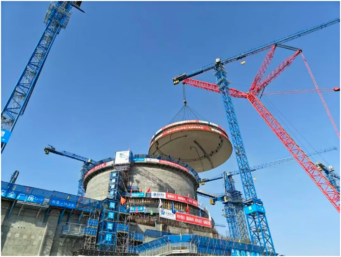 4月25日,华能石岛湾核电站扩建一期工程1号机组顺利完成内穹顶吊装,项目从土建施工阶段全面转入设备安装阶段。这不仅是我国北方地区首个开工建设的“华龙一号”项目,也将成为山东省首个建成投产的“华龙一号”核电机组。(来源:华能)