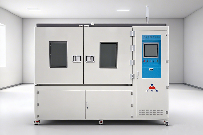 砂砾冲击试验机采用无磁伺服空压机,空压机压力可在一定范围内设置,可输出一定压力、一定的速率的压缩空气到喷射嘴,通过调压阀调节喷嘴气流,从而改变碰撞砂砾对试件的冲击速度,安装试件的挡板可以旋转成45度或者90度,砂砾冲击试验完成后收集于试验机内部砂砾收集箱,方便取出循环利用,砂砾冲击试验的场所为低温试验舱,为试验提供-40摄氏度的低温环境。
